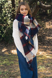 Oversize chunky plaid asymmetrical trim frayed edge scarf