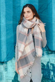 OVERSIZE CHUNKY PLAID ASYMMETRICAL TRIM FRAYED EDGE SCARF