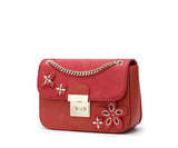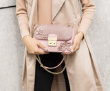 The sliding chain strap can be worn multiple ways, changing between a shoulder and a top handle bag. With square body, Feminine flower appliqués, portable and novelty, fashionable and elegant.